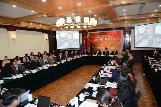 5 мая в Шанхайской Академии Общественных наук (ШАОН) состоялся международный симпозиум в честь 70-летия победы СССР во Второй мировой войне. В нем приняли участие представители широких научных кругов из разных стран мира, а также Генеральные консулы РФ, Беларуси и Узбекистана. На церемонии открытия ВРИО директора ИНИОН РАН д.полит.н. Д.В. Ефременко поздравил всех присутствующих с праздничной датой и поблагодарил руководство ШАОН за приглашение, пожелав всем собравшимся новых научных достижений. Во время пленарного заседания директор центра россиеведения д.полит.н. И.И. Глебова выступила с докладом, посвященным роли советского народа в победе над фашистской Германией.
